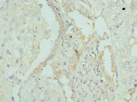Immunohistochemistry of paraffin-embedded human lung cancer using CSB-PA001947ESR2HU at dilution of 1:100