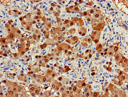 Immunohistochemistry of paraffin-embedded human liver cancer using CSB-PA002005DA01HU at dilution of 1:100
