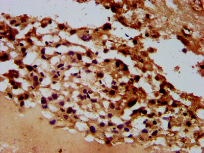 IHC image of CSB-PA681513LA01HU diluted at 1:600 and staining in paraffin-embedded human melanoma performed on a Leica BondTM system. After dewaxing and hydration, antigen retrieval was mediated by high pressure in a citrate buffer (pH 6.0). Section was blocked with 10% normal goat serum 30min at RT. Then primary antibody (1% BSA) was incubated at 4°C overnight. The primary is detected by a biotinylated secondary antibody and visualized using an HRP conjugated SP system.