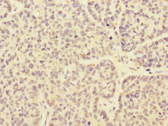 Immunohistochemistry of paraffin-embedded human ovarian cancer using CSB-PA878863ESR2HU at dilution of 1:100