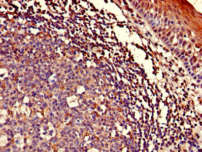 Immunohistochemistry of paraffin-embedded human tonsil tissue using CSB-PA002196LA01HU at dilution of 1:100