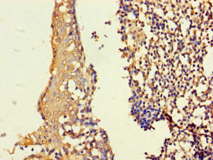 Immunohistochemistry of paraffin-embedded human testis tissue using CSB-PA878898LA01HU at dilution of 1:100