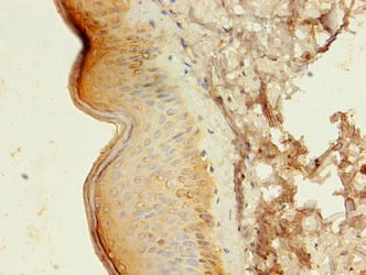 Immunohistochemistry of paraffin-embedded human skin tissue using CSB-PA734569LA01HU at dilution of 1:100