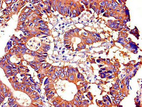 Immunohistochemistry of paraffin-embedded human colon cancer using CSB-PA18129A0Rb at dilution of 1:100