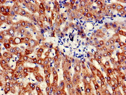 Immunohistochemistry of paraffin-embedded human liver tissue using CSB-PA002350EA01HU at dilution of 1:100