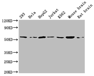 Positive WB detected in: 293 whole cell lysate, Hela whole cell lysate, HepG2 whole cell lysate, Jurkat whole cell lysate, K562 whole cell lysate, Mouse brain tissue, Rat brain tissue