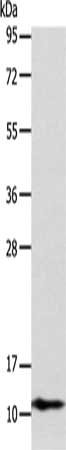 Gel: 12%SDS-PAGE, Lysate: 40 μg, Lane: Lovo cells, Primary antibody: CSB-PA075471(ATP5J Antibody) at dilution 1/200, Secondary antibody: Goat anti rabbit IgG at 1/8000 dilution, Exposure time: 5 minutes