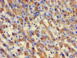 Immunohistochemistry of paraffin-embedded human liver cancer using CSB-PA002460LA01HU at dilution of 1:100