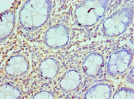 Immunohistochemistry of paraffin-embedded human colon tissue using CSB-PA002485ESR2HU at dilution of 1:100