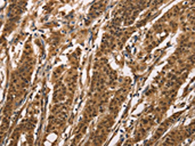 The image on the left is immunohistochemistry of paraffin-embedded Human gastic cancer tissue using CSB-PA172172(BAI1 Antibody) at dilution 1/40, on the right is treated with synthetic peptide. (Original magnification: ×200)