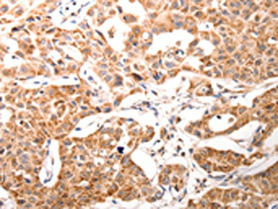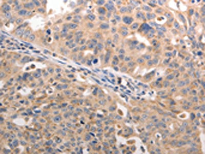 The image on the left is immunohistochemistry of paraffin-embedded Human lung cancer tissue using CSB-PA277795(BGLAP Antibody) at dilution 1/60, on the right is treated with synthetic peptide. (Original magnification: ×200)