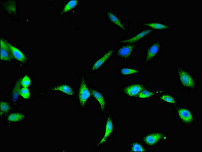 Immunofluorescent analysis of Hela cells using CSB-PA11829A0Rb at dilution of 1:100 and Alexa Fluor 488-congugated AffiniPure Goat Anti-Rabbit IgG(H+L)