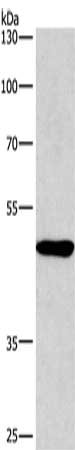 Gel: 10%SDS-PAGE, Lysate: 60 μg, Lane: A549 cells, Primary antibody: CSB-PA192471(BMP15 Antibody) at dilution 1/266.7, Secondary antibody: Goat anti rabbit IgG at 1/8000 dilution, Exposure time: 5 minutes
