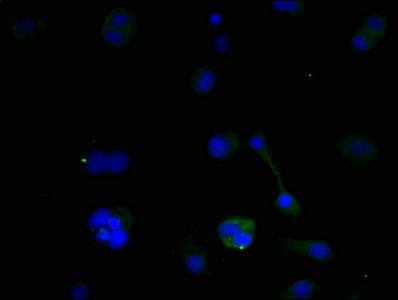 Immunofluorescent analysis of MCF-7 cells using CSB-PA618642ESR1HU at dilution of 1:100 and Alexa Fluor 488-congugated AffiniPure Goat Anti-Rabbit IgG(H+L)
