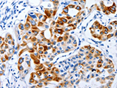 Gel: 8%SDS-PAGE, Lysate: 40 μg, Lane: Human lung cancer tissue, Primary antibody: CSB-PA080665(BPIFB3 Antibody) at dilution 1/1600, Secondary antibody: Goat anti rabbit IgG at 1/8000 dilution, Exposure time: 30 seconds