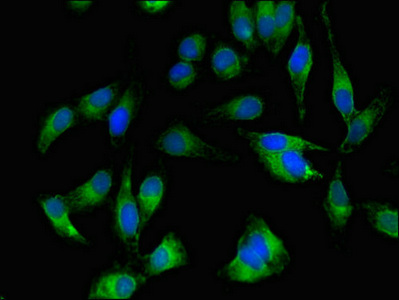 Immunofluorescent analysis of Hela cells using CSB-PA002867LA01HU at dilution of 1:100 and Alexa Fluor 488-congugated AffiniPure Goat Anti-Rabbit IgG(H+L)