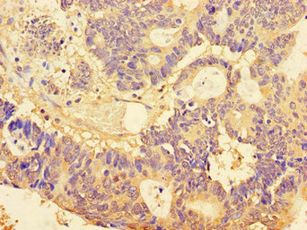Immunohistochemistry of paraffin-embedded human colon cancer using CSB-PA002884LA01HU at dilution of 1:100