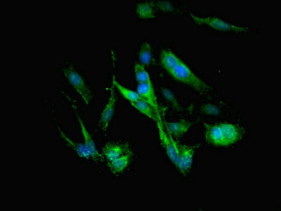 Immunofluorescent analysis of Hela cells using CSB-PA10599A0Rb at dilution of 1:100 and Alexa Fluor 488-congugated AffiniPure Goat Anti-Rabbit IgG(H+L)