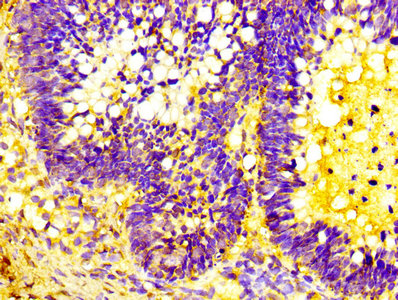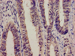 Immunohistochemistry analysis of human colon cancer using CSB-PA10599A0Rb at dilution of 1:100