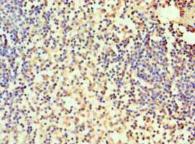 Immunohistochemistry of paraffin-embedded human spleen tissue using CSB-PA004364ESR1HU at dilution of 1:100