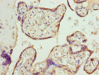 Immunohistochemistry of paraffin-embedded human placenta tissue using CSB-PA07864A0Rb at dilution of 1:100