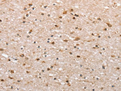 The image on the left is immunohistochemistry of paraffin-embedded Human brain tissue using CSB-PA798312(CANX Antibody) at dilution 1/50, on the right is treated with fusion protein. (Original magnification: ×200)