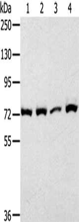 Gel: 10%SDS-PAGE, Lysate: 30 μg, Lane: 293T cells, Primary antibody: CSB-PA445743(CAPN1 Antibody) at dilution 1/450, Secondary antibody: Goat anti rabbit IgG at 1/8000 dilution, Exposure time: 1 minute