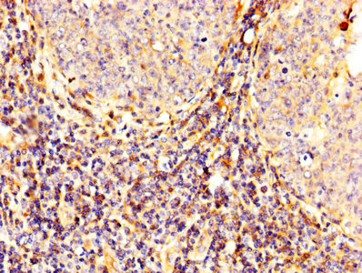 IHC image of CSB-PA004496LA01HU diluted at 1:300 and staining in paraffin-embedded human appendix tissue performed on a Leica BondTM system. After dewaxing and hydration, antigen retrieval was mediated by high pressure in a citrate buffer (pH 6.0). Section was blocked with 10% normal goat serum 30min at RT. Then primary antibody (1% BSA) was incubated at 4°C overnight. The primary is detected by a biotinylated secondary antibody and visualized using an HRP conjugated SP system.