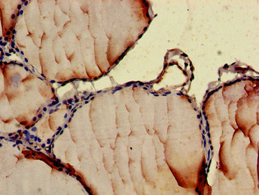 Immunohistochemistry of paraffin-embedded human thyroid tissue using CSB-PA05939A0Rb at dilution of 1:100