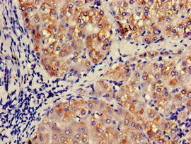 Immunohistochemistry of paraffin-embedded human liver tissue using CSB-PA05939A0Rb at dilution of 1:100