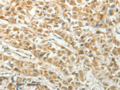The image on the left is immunohistochemistry of paraffin-embedded Human lung cancer tissue using CSB-PA516472(CCND1 Antibody) at dilution 1/50, on the right is treated with fusion protein. (Original magnification: ×200)