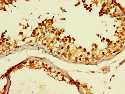 Immunohistochemistry of paraffin-embedded human testis tissue using CSB-PA004873LA01HU at dilution of 1:100