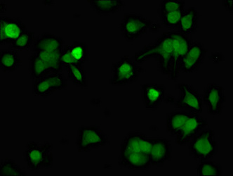 Immunofluorescent analysis of MCF-7 cells using CSB-PA892321LA01HU at dilution of 1: 100 and Alexa Fluor 488-congugated AffiniPure Goat Anti-Rabbit IgG(H+L)