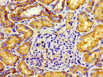 Immunohistochemistry of paraffin-embedded human kidney tissue using CSB-PA892321LA01HU at dilution of 1: 100