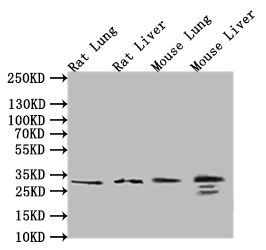 Positive WB detected in: Rat Lung tissue lysate, Rat Liver tissue lysate, Mouse Lung tissue lysate, Mouse Liver tissue lysate