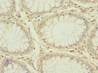 Immunohistochemistry of paraffin-embedded human colon cancer using CSB-PA004972ESR2HU at dilution of 1:100