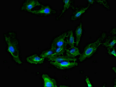 Immunofluorescent analysis of Hela cells using CSB-PA613684LA01HU at dilution of 1:100 and Alexa Fluor 488-congugated AffiniPure Goat Anti-Rabbit IgG(H+L)