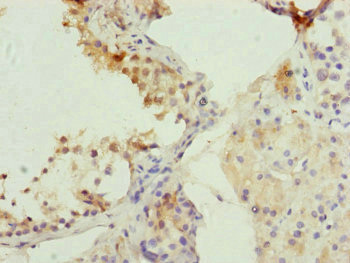 Immunohistochemistry of paraffin-embedded human testis tissue using CSB-PA005020ESR1HU at dilution of 1:100