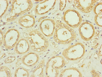 Immunohistochemistry of paraffin-embedded human kidney tissue using CSB-PA005020ESR1HU at dilution of 1:100