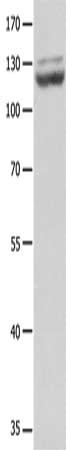 Gel: 8%SDS-PAGE, Lysate: 40 μg, Lane: Human brain malignant glioma tissue, Primary antibody: CSB-PA164023(CDH1 Antibody) at dilution 1/1750, Secondary antibody: Goat anti rabbit IgG at 1/8000 dilution, Exposure time: 1 minute