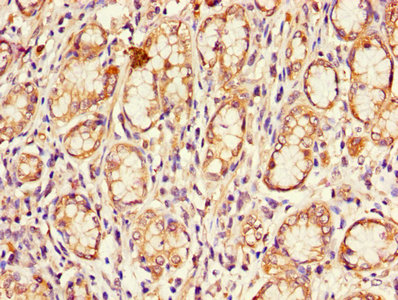 Immunohistochemistry of paraffin-embedded human stomach tissue using CSB-PA005092LA01HU at dilution of 1:100