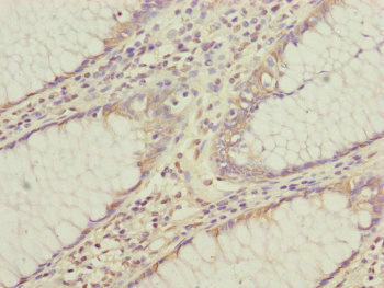 Immunohistochemistry of paraffin-embedded human colon cancer using CSB-PA822217ESR1HU at dilution of 1:100