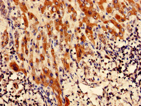 Immunohistochemistry analysis of human liver cancer using CSB-PA850915LA01HU at dilution of 1:100