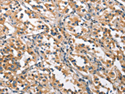 The image on the left is immunohistochemistry of paraffin-embedded Human gastic cancer tissue using CSB-PA903339(CHMP1A Antibody) at dilution 1/60, on the right is treated with fusion protein. (Original magnification: ×200)