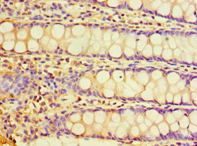 Immunohistochemistry of paraffin-embedded human colon tissue using CSB-PA670962ESR2HU at dilution of 1:100