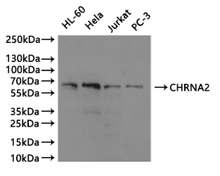 The peptide mapping within amino acids 27-264 of the recombinant human CHRNA2 is used to immunize rabbits to generate the anti-CHRNA2 antibody. The resulting antibody is a polyclonal antibody and occurs as an unconjugated IgG. It underwent antigen affinity purification. And it is only reactive with human CHRNA2 protein, a type of receptor best known for modulating nicotine dependence in brain cells. Recent findings have been shown that CHRNA2 plays a role in energy metabolism. This CHRNA2 antibody is suitable for the detection of the CHRNA2 protein in ELISA, WB, and IHC applications.