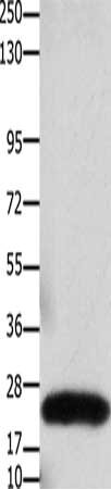 Gel: 10%SDS-PAGE, Lysate: 30 μg, Lane: Human colon cancer tissue, Primary antibody: CSB-PA561954(CLDN3 Antibody) at dilution 1/550, Secondary antibody: Goat anti rabbit IgG at 1/8000 dilution, Exposure time: 20 seconds