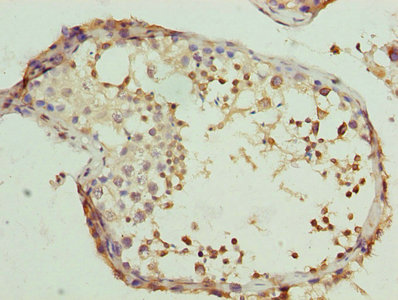 Immunohistochemistry of paraffin-embedded human testis tissue using CSB-PA005544LA01HU at dilution of 1:100