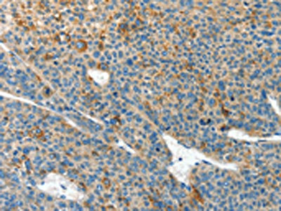 The image on the left is immunohistochemistry of paraffin-embedded Human thyroid cancer tissue using CSB-PA930031(CLPTM1L Antibody) at dilution 1/60, on the right is treated with synthetic peptide. (Original magnification: ×200)
