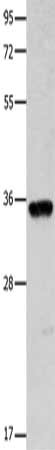 Gel: 10%SDS-PAGE, Lysate: 40 μg, Lane: Mouse brain tissue, Primary antibody: CSB-PA277061(COX11 Antibody) at dilution 1/600, Secondary antibody: Goat anti rabbit IgG at 1/8000 dilution, Exposure time: 15 seconds